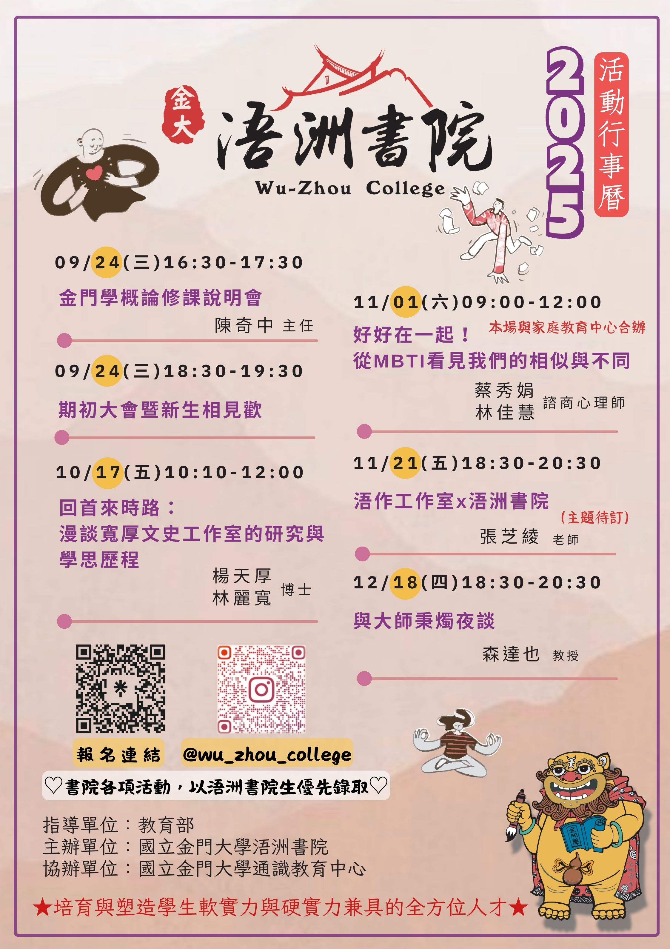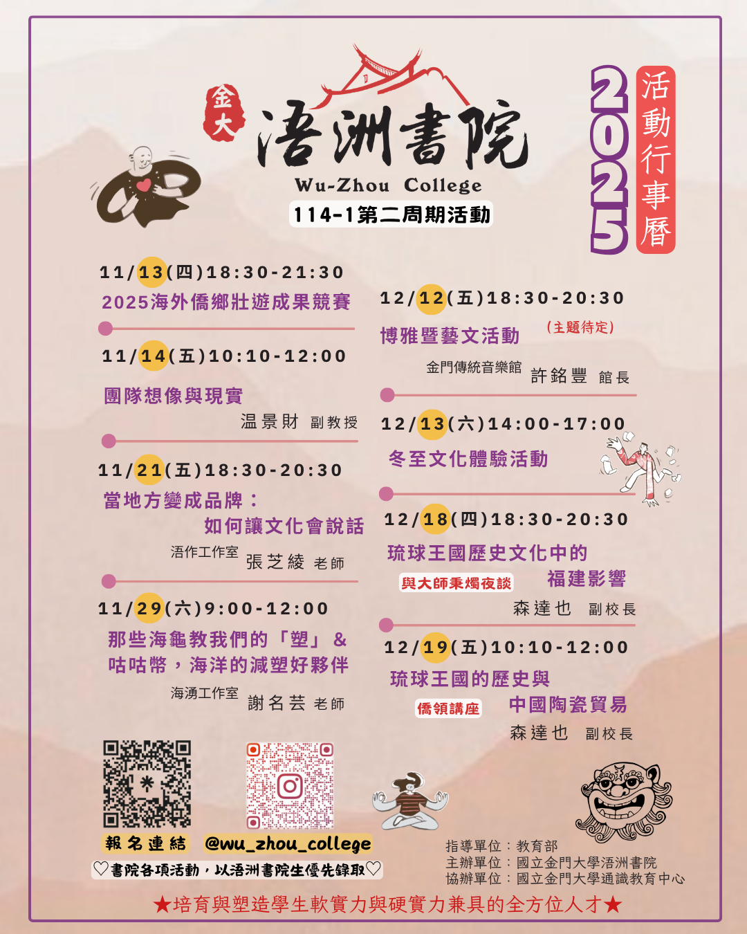 114-1浯洲書院講座活動如海報所示,並不定期新增