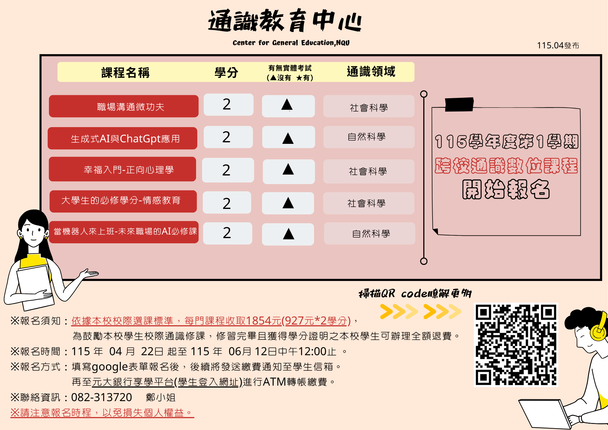 本校115學年度第1學期【跨校通識數位課程】開始報名囉!